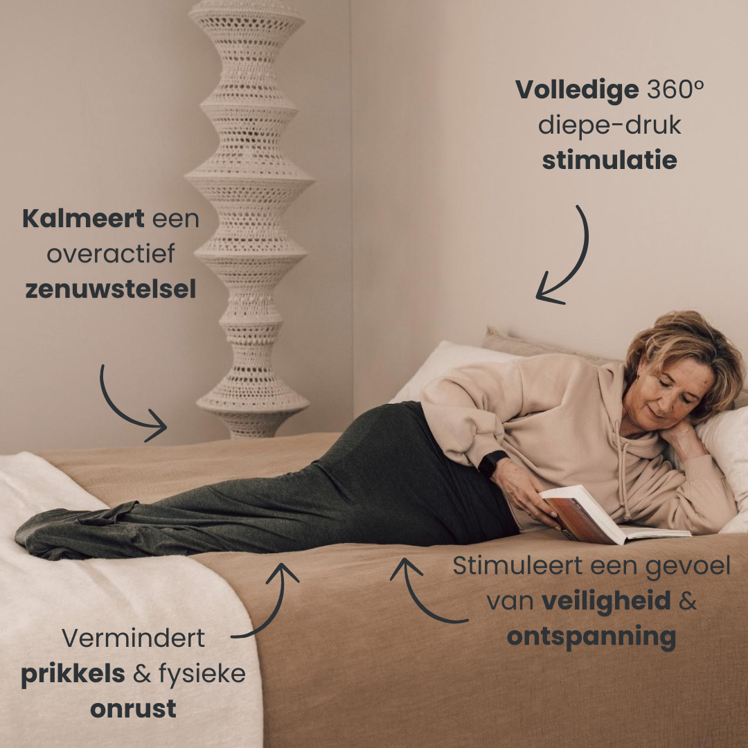 Omhult je hele lichaam met een zachte compressie waardoor je volledig tot rust komt.