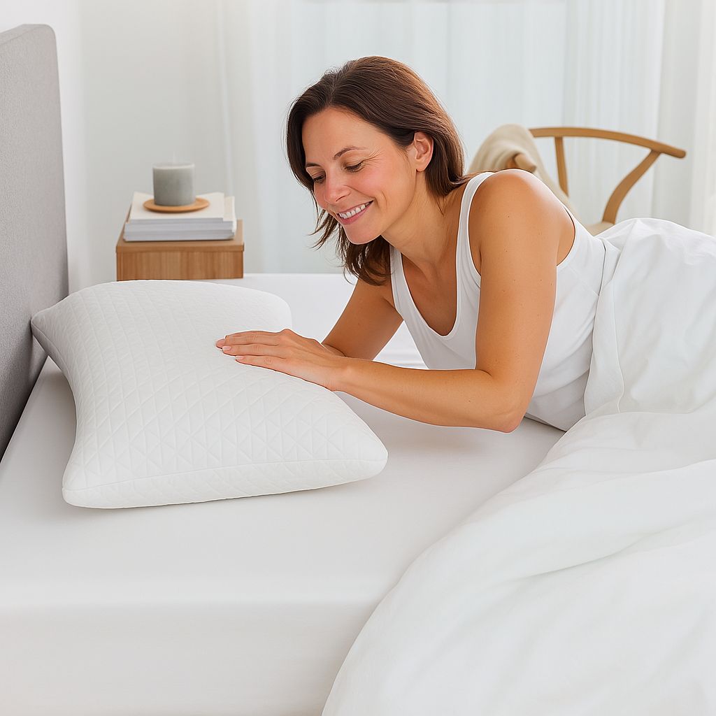 Dit zorgt niet alleen voor een heerlijk zacht en comfortabel gevoel, maar helpt ook je schouders en nekwervels volledig te ontspannen en in een natuurlijke houding te blijven. Zo krijgt je lichaam eindelijk de rust en ondersteuning die het verdient voor een diepe, herstellende slaap!